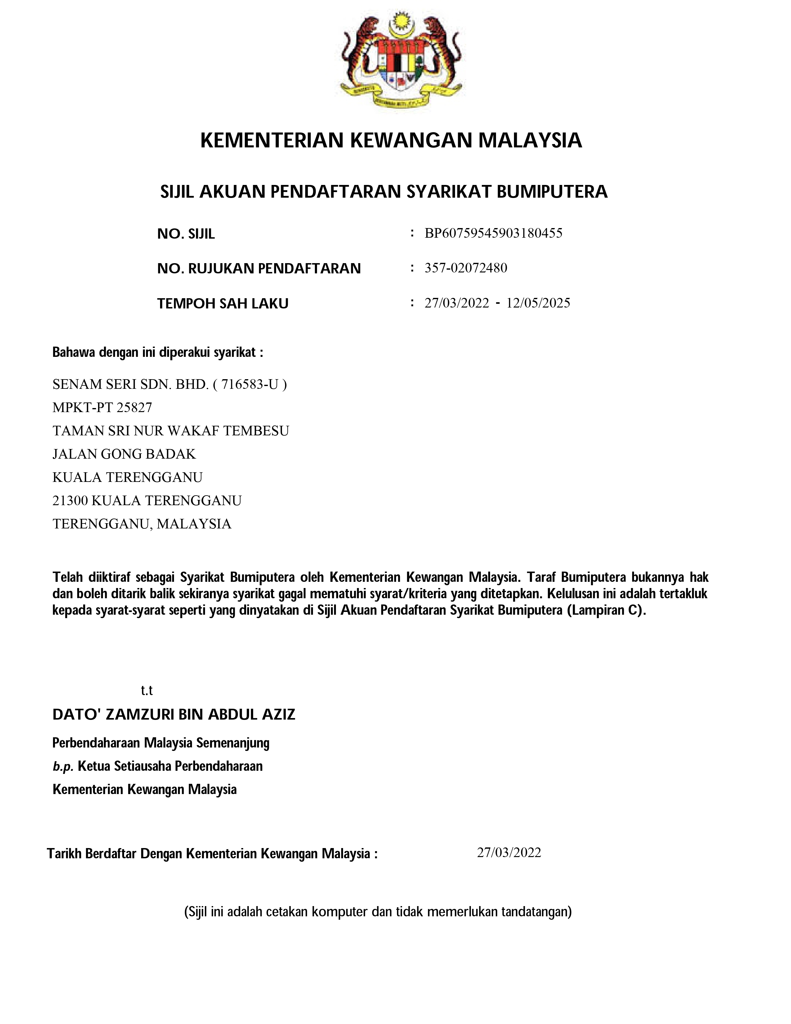SENAM SERI SDN. BHD.